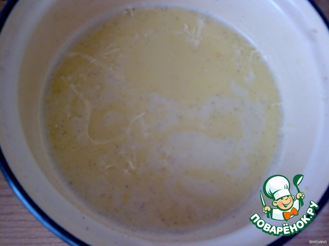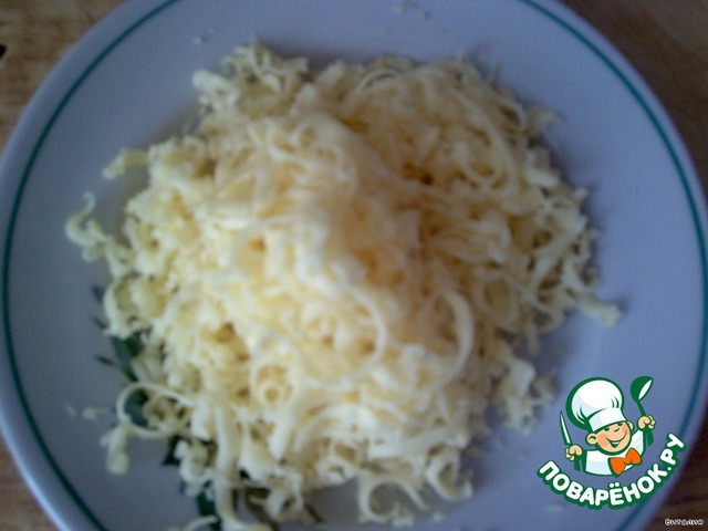 • Сыр натереть на терке и добавить к яичной смеси и хорошо перемешать.