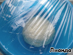 В остальную муку добавить опару, творог, щепотку соли. Тщательно вымесить, постепенно добавляя растительное масло. Накрыть миску пленкой и оставить в теплом месте на час.