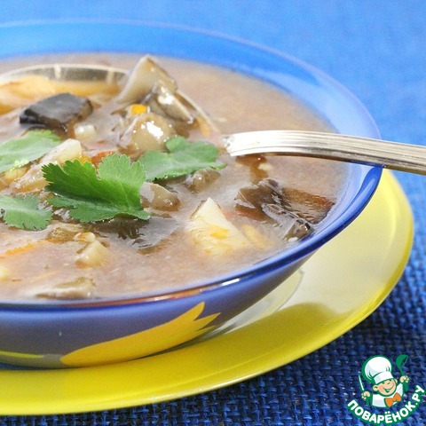 Супчик получается обалденнейший, муж даже сметаны к нему не запросил. Очень необычное сочетание томата и грибов, но очень вкусное! А еще, при готовом бульоне - быстро готовится.