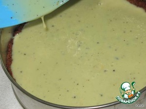 Вылить начинку на слегка остывшую основу и вернуть в духовку ещё на 30 мин. Готовность проверяется, как в чизкейке - при лёгком встряхивании середина должна слегка колыхаться.