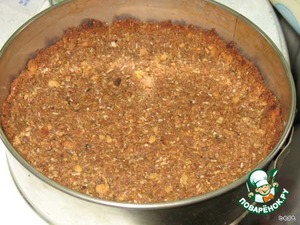 Выложить основу в разъёмную форму (23 см), придавливая плотно ко дну и стенкам.