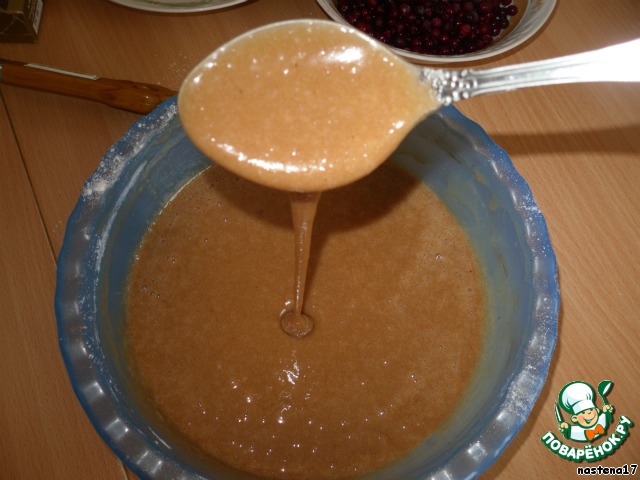 Далее добавляем муку. Тесто не очень густое.