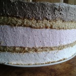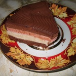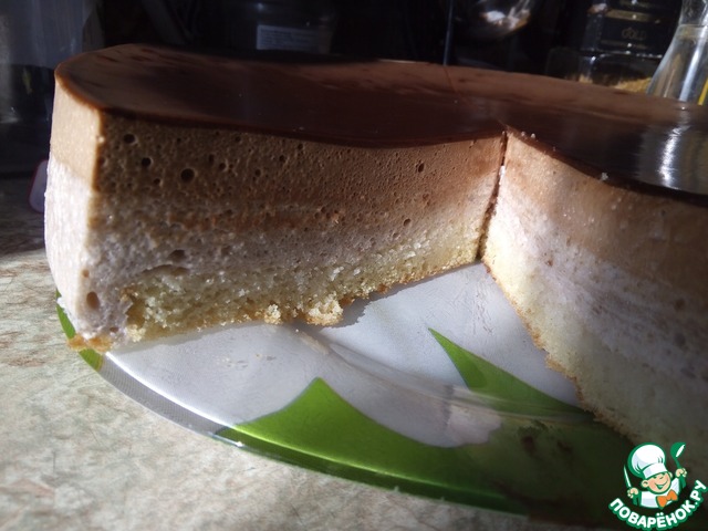 Готовый мусс выливаем на базу. И это – великолепный, вкуснейший, роскошнейший мусс – верьте мне, девочки (и мальчики)! Мусс оставляем застывать в холодильнике на час... Я спешила и не «выдерживала» сроки застывания, и поэтому у меня вместо трех четких слоев, в результате получилось... потом увидите что ;-)