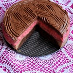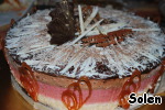 Торт можно украсить, по желанию, шоколадной лентой (опять-таки, я рассказывала об этом в рецепте «торт с Манго-муссом»). Это будет вкусно – гарантирую!) Я просто, освободив его из формы и сняв бумагу, провела нагретым кулинарным шпателем по его бокам, чтобы они были гладкими. Шпатель - металлическая узкая и длинная лопатка. Мы ее нагреваем, погружая в сосуд с горячей (только что из чайника) водой, вытираем насухо и разглаживаем (как бы "утюжим") бока. Нагрели, протерли насухо бумажным полотенцем, провели, разглаживая поверхность, повторили процесс...