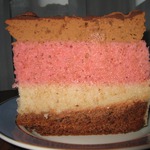 Разрезаем мы торт ножом (я люблю с мелкими зазубренными краями), опущенным секунд на 20 в кипяток (опять-таки, баночка с кипятком в ней), насухо протертым. Тогда получается идеальный разрез, и в этом торте нож вообще как-будто по маслу идет...