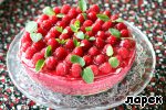 Выливаем клубничный мусс на торт и отправляем застывать в холодильник, часа на полтора-два. Да, увы, не меньше... Можно, конечно, попробовать увеличить количество желатина на пару граммов, чтобы уменьшить время застывания мусса, но не думаю, что этим можно выгадать много времени...