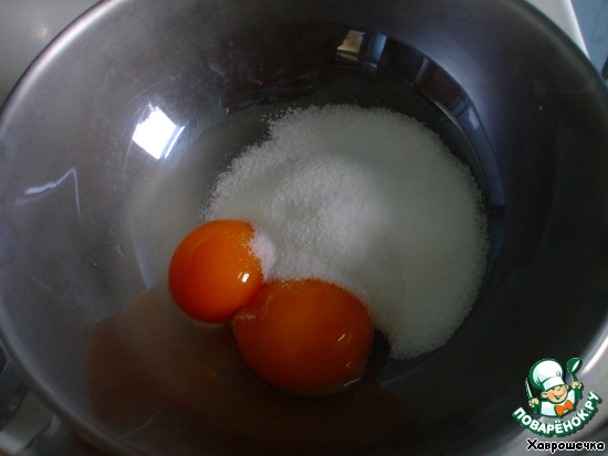 Отдельно взбить белки с сахаром (130 гр) до устойчивых «пиков». Взбивая белки, я обычно добавляю щепотку "Тар-тар" порошка, стабилизирующего яичный белок, благодаря чему - у меня никогда не было проблемы "взобьется–не взобьется"...