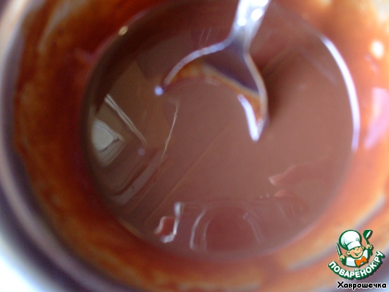 Через пару часов, когда наш мусс выглядит «надежно», начинаем готовить шоколадный мусс. Процесс приготовления шоколадного мусса я уже описывала в другом, помещенном мной на Поваренке, рецепте http://www.povarenok .ru/recipes/show/605 58/