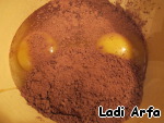 2 яйца взбила вилкой с 6 ложками какао и добавила к фасолевой массе.