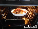Помещаем курицу в духовку на 30 минут, после этого уменьшаем температуру до 180 градусов и жарим ее еще 30 минут. Во время жарки для образования корочки поливаем курицу выделившимся соком и соусом.