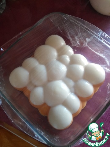 Берём кондитерский шприц или просто целлофановый пакет и наполняем его сливочно-желейной массой.