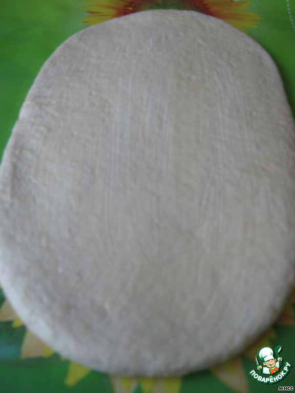 Каждую часть раскатала в овал толщиною 5 мм, намазала растопленным сливочным маслом.