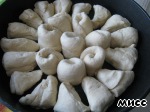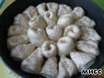 В те же старые времена девушка немного подогрела воду, растворила в ней дрожжи и сахар. Затем просеяла муку в миску, в муке сделала углубление и влила дрожжевую смесь, добавила соль, паприку, растопленное масло и чечевичное пюре. Вымесила тесто, накрыла салфеткой и оставила подниматься в тёплом месте.