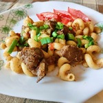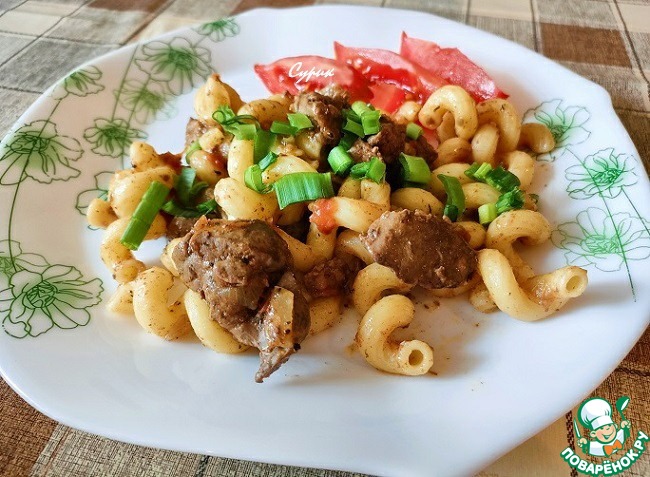 Рецепт «Лапша в соусе из куриной печени с томатами»: