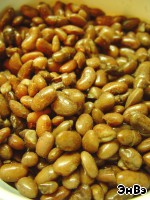 Фасоль отварить, воду слить. Если брать консервированную, ее следует промыть.