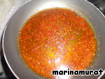 Пока наш суп кипит, делаем зажарку к супу, которая придает супу потрясающий цвет и аромат. На сковороде нагреваем подсолнечное масло (можно растопить сливочное, но для меня это тяжелый продукт), кладем туда "пул бибер" (красный острый перец хлопьями) и сухую мяту, все быстро перемешиваем, чтоб не подгорело ничего там :)