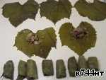 Берем соленые виноградные листья (Эх, жалко лето кончилось, а то бы нарвали свежих молоденьких виноградных листочков!) выкладываем начинку,