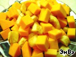 Мякоть тыквы порезать на кубики со сторонами примерно в 1 см. Айву очистить от кожуры и тоже порезать по возможности крупно.