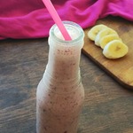 Основа рецепта - кефир, банан и мед. Все остальное - по вашему желанию и, конечно же, зависит от сезона. У меня был кефир 0,75 литра, мед, 1 банан и чашка замороженной клубники.