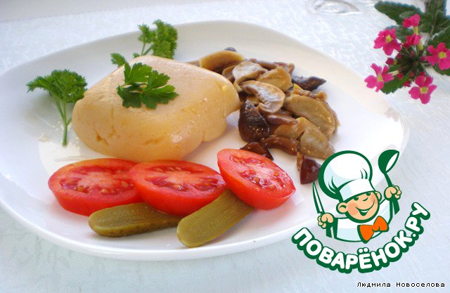 Можно подать с маринованными грибами, солеными огурчиками, овощами.