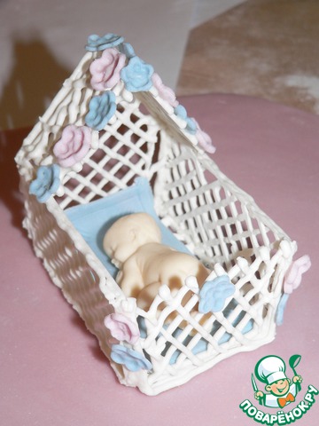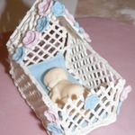 Колыбелька из айсинга - это эффектное изысканное украшение для торта. Это могут быть Крестины малютки или когда Вы празднуете первый годик рождения. Сделать такую колыбель не так уж трудно, а даже очень интересно. Украсить можно по-всякому: сделать больше или меньше размером, пустить другой узор по бокам и т. д., но в результате всe равно получится красивое, неповторимое и только Ваше единственное изделие. Такую колыбельку можно сделать заранее и хранить длительное время в пластиковой коробочке, поставив подальше и повыше, чтобы случайно не задеть, т. к. все изделия из айсинга очень хрупкие. Колыбельку можно сделать также как подарок своим близким или знакомым, которые Вас пригласили на свой семейный детский праздник. Вы увидите восхищенные взгляды гостей, т. к. такую игрушку не купить в магазине, а только можно сделать своими руками. Если Вы решили не печь домашний торт, а купить в магазине, в таком случае колыбельку можно поставить и на покупной торт. Хорошо также вылепить спящего малютку из мастики и, даже, из пресного теста, "одеть" чепчик на головку, положить в колыбельку, укрыв мастичным одеялком или тонко раскатанным кусочком теста, придав соответствующую форму. Хозяюшки, у которых нет навыков по работе с мастикой, делайте из пресного теста и самого пупсика, включив свою фантазию. Такая работа будет интересна, если лепкой вы будете заниматься вместе с Вашими детьми.