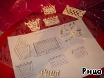 Что мы делаем чтобы не тратить время зря на непредвиденные поломки - это рисуем дополнительные шаблончики - близнецы. Строительного материала потребуется поболе, но цель нам важнее. Используем только свежий взбитый айсинг. Если при отсадке линия пошла слишком тонко, повторяем ещё раз, подправляем зубочистками и кладём сушиться где-нибудь повыше на ровную поверхность полок, мебели и т.д. В этой кропотливой работе нет отходов - даже поломанные части, кусочки- это всё пригодится при сборке готовой конструкции, т.е. где - то подклеить "заплаточку", полосочку, основание дна - всё сохраняем по коробочкамдля других идей из айсинга они также пригодятся. Остатки айсинга не оставляем на др. день- он становится жидким, даже если добавить сахарную пудру.всё получится, берёмся за дело без страха и с улыбкой
