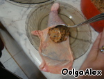 Фаршируем нашу "шкурку с косточкой" готовым фаршем.