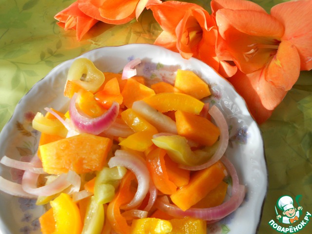 Честно сказать, когда увидела этот рецепт, была немного в недоумении на счeт вкуса тыквы, а приготовив салат, я убедилась: автор был прав - это неимоверно вкусно!