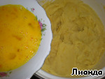 Яйца слегка взбить и добавить в теплое овощное пюре. Посолить по вкусу. Тщательно размешать.
