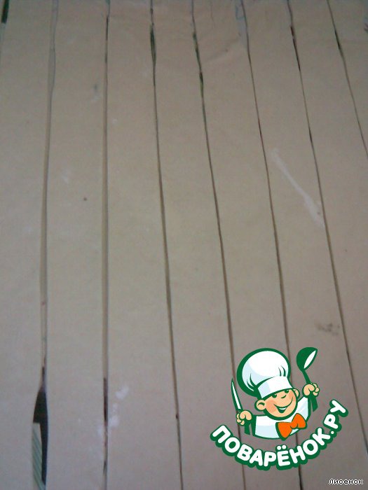 • Готовый фарш положить лепешкой на ладонь и посередине соломку (руки должны быть мокрыми).