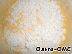 • Очень тщательно взбить яйца с сахаром, потом добавить сливочное масло (растопленное), размешать. Затем сметану, манку, ванильный сахар и соду, снова взбить.