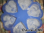 • Наполняем формы, причем, если они силиконовые, то лучше их сразу ставить на подставку, т. к. их тяжело поднести к духовке и не разлить содержимое)))