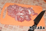 Для создания нашего волшебного блюда нам понадобится кусок нежирной свининки. Нарезаем свининку мелкими кусочками.