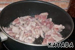 Наливаем в сковороду немного растительного масла, нагреваем и бросаем туда жариться нашу свинину.