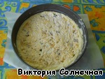 Тесто выкладываем в форму и формируем бортики. На тесто выкладываем начинку и посыпаем сверху кунжутом.