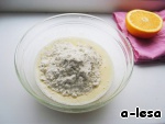 Постепенно добавить муку, смешанную с разрыхлителем, перемешать.