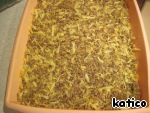 Оставшийся сыр равномерно распределить по форме или противню (можно использовать промасленную бумагу или просто смазать форму маслом, я готовила в силиконовой форме, поэтому ничем ее не смазывала).