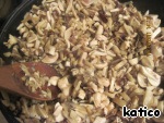 Свежие грибы мелко порезать, я еще добавила немного сушеных белых грибов, для запаха, присолить, обжаривать в небольшом количестве оливкового масла, пока не выпарится лишняя жидкость.