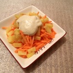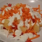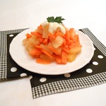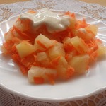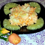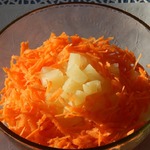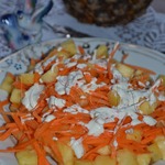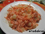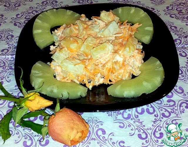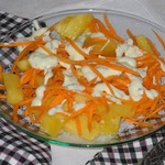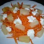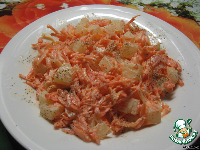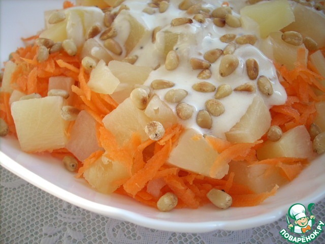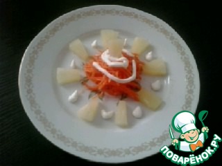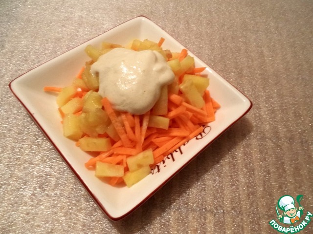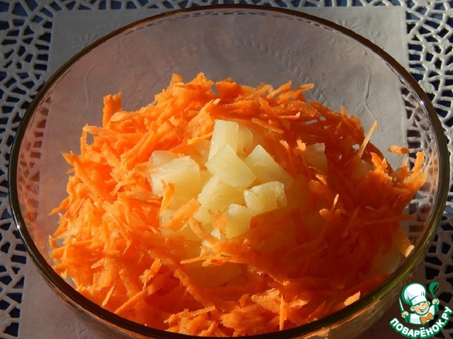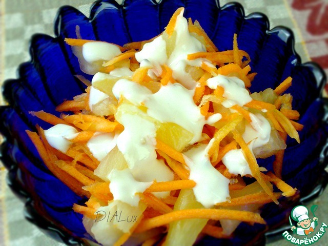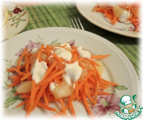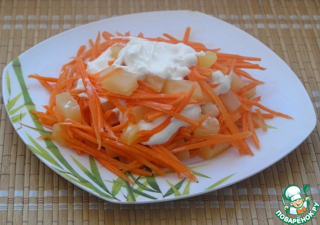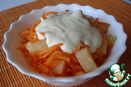 Выложить на блюдо моркоь с ананасом, полить соусом. Дать настояться минут десять.