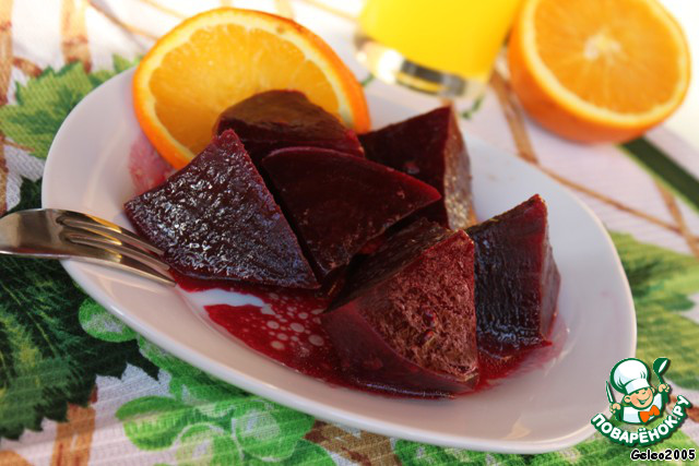 Такую свеклу можно слегка дополнить: очистить апельсин от кожуры и пленок, нарезать на сегменты и выложить поверх свеклы, украсить цедрой и сбрызнуть оливковым маслом.