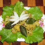 Это блюдо появилось у меня на кухне совершенно случайно. Так уж сложилось, что у нас в доме проводились ремонтные работы, и в связи с этим был отключен газ. Ну и как часто у нас бывает, отключить - отключили, а вот вовремя включить забыли. Вот и пришлось моему мужу отправится на работу без обеда. А ближе к вечеру звонит он мне и выдает: "Хочу на ужин картошку по-немецки". - "Что? Я же тебе такого не готовила!" Оказывается, он решил пообедать в соседней кафешке и вот там и познакомился с этим блюдом, а потом решил продолжить знакомство и дома. Внятных объяснений, что же это такое, я не дождалась: "Ну такая кусочками и в зернах горчицы" - не правда ли, исчерпывающий ответ. Пришлось идти за советом в интернет. Наградой мне стала благодарность мужа и его похвала: "У тебя вкуснее!"