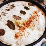 [+5]Правда, несколько отступил от рецепта. Заливал большим количеством яиц с молоком, в котором уже были замочены панировочные сухари со специями. В итоге получилась более выраженная шапка сверху, что ближе к оригиналу. Ну, и что дальше от оригинала, запекал не в духовке, а под толстой крышкой на толстостенной сковороде, потому и шапка не подрумянена. И набор специй отличается.