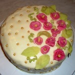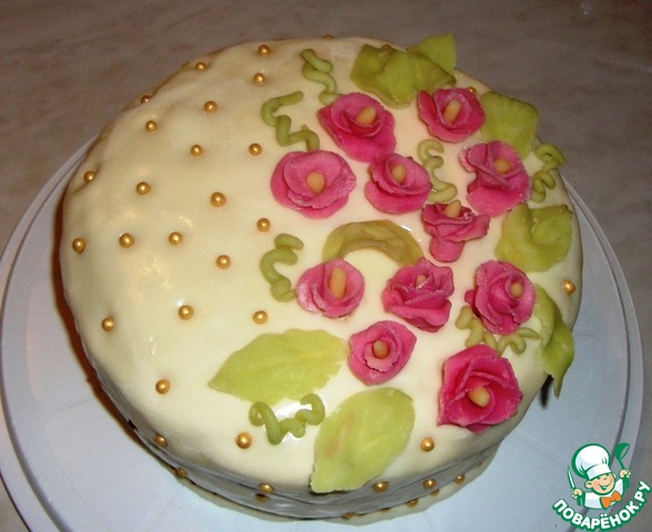 9. Дать коржам остыть, потом разрезать на 2 части. Пропитать коржи и смазать кремом.