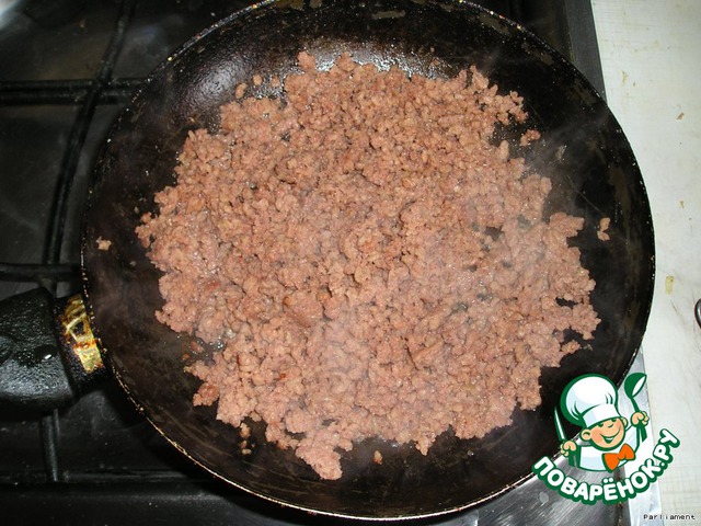 6. Мясной фарш, обжаренный на масле с луком и пропущенный в дальнейшем через мясорубку;