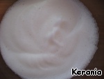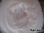 Не переставая взбивать белки, тонкой струйкой добавить в них сахарную пудру. Взбивать до образования «твердых пиков».