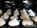 Безе выложить на смазанный маслом противень при помощи кондитерского шприца или столовой ложки.