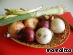 Для начинки возьмем несколько имеющихся в наличии сортов лука. Этот лук выращен на моем огороде.