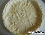 Охлажденное тесто выложим в форму для запекания, наколем вилкой. Тесто запечь в духовке примерно 20 минут до легкого зарумянивания.