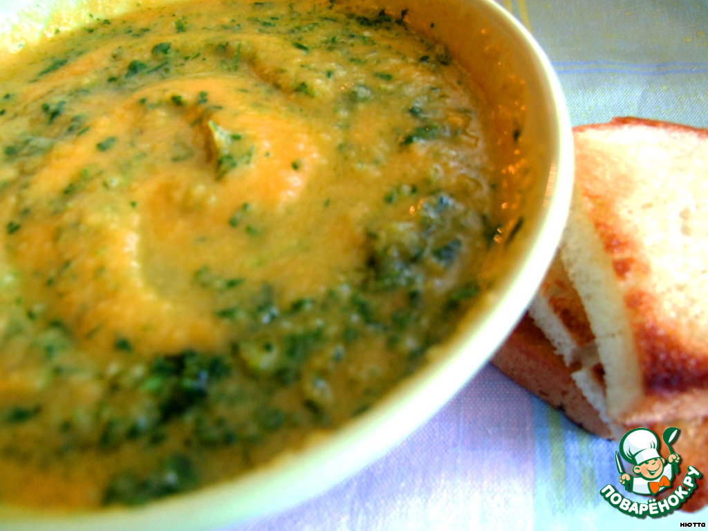Суп-пюре из моркови с заправкой из петрушки и чеснока в оливковом масле. Это, ребят, рецепт от шеф-повара. Я такое первый раз попробовала в Мюнхене в далеком 89 -м году. Тогда, благодаря Горбачеву, наконец-то, поднялся железный занавес, и мы могли полететь за границу. Это было мое первое посещение запретной страны :) Мы полетели с мужем в Мюнхен на Октоберфест. Наверное, с тех пор я и полюбила пиво. И вот, когда мы уже улетали, то в аэропорту Мюнхена в кафе, я заказала себе этот супчик. Меня до такой степени покорил вкус, что я поперлась просить рецепт у повара :). Муж мне тогда сказал: "С ума, что ли, сошла? Какой шеф тебе это скажет?" А мне 26 лет, я уверена в своей "неземной красоте" (ржу, не могу), ну, ребят, была я такая молодая и до ужаса самоуверенная и поперлась за рецептом! По-немецки (как и по-французски, и итальянски) я говорю довольно бойко (я все-таки девушка из профессорской семьи и до ужаса обучена всяким наукам, опять ржу), включила все свое обаяние, и мне не то что рецепт дали, еще и пошагово все объяснили. Так что, друзья, если кому интересен рецепт 89 -го года от немецкого шеф-повара из Баварии по поводу морковного супа-пюре, то милости прошу в гости смотреть. :)