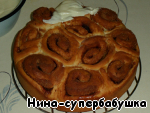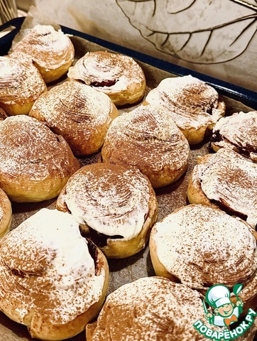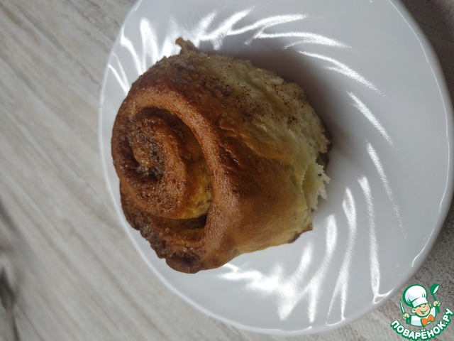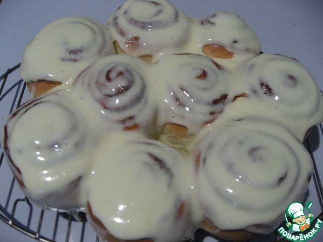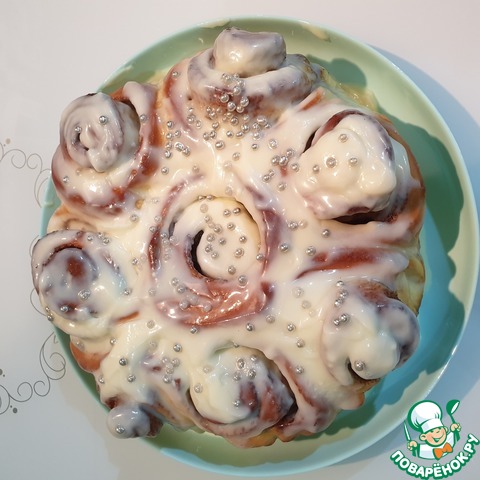 Собственно Синнабон (англ. Cinnabon) - это такая сеть пекарен-кондитерских, специализирующаяся на выпечке булочек-роллов с корицей. Традиционно эти булочки покрываются кремом из сливочного сыра. Сначала я так и хотела сделать, но в последний момент передумала и решила приготовить их в большой разъемной форме в виде пирога, получилось по-домашнему тепло и уютно. В интернете есть несколько вариантов, все они очень похожи, отличаются, буквально, мелочами. Я взяла вариант Татьяны Назарук с сайта "Вкусный блог".
